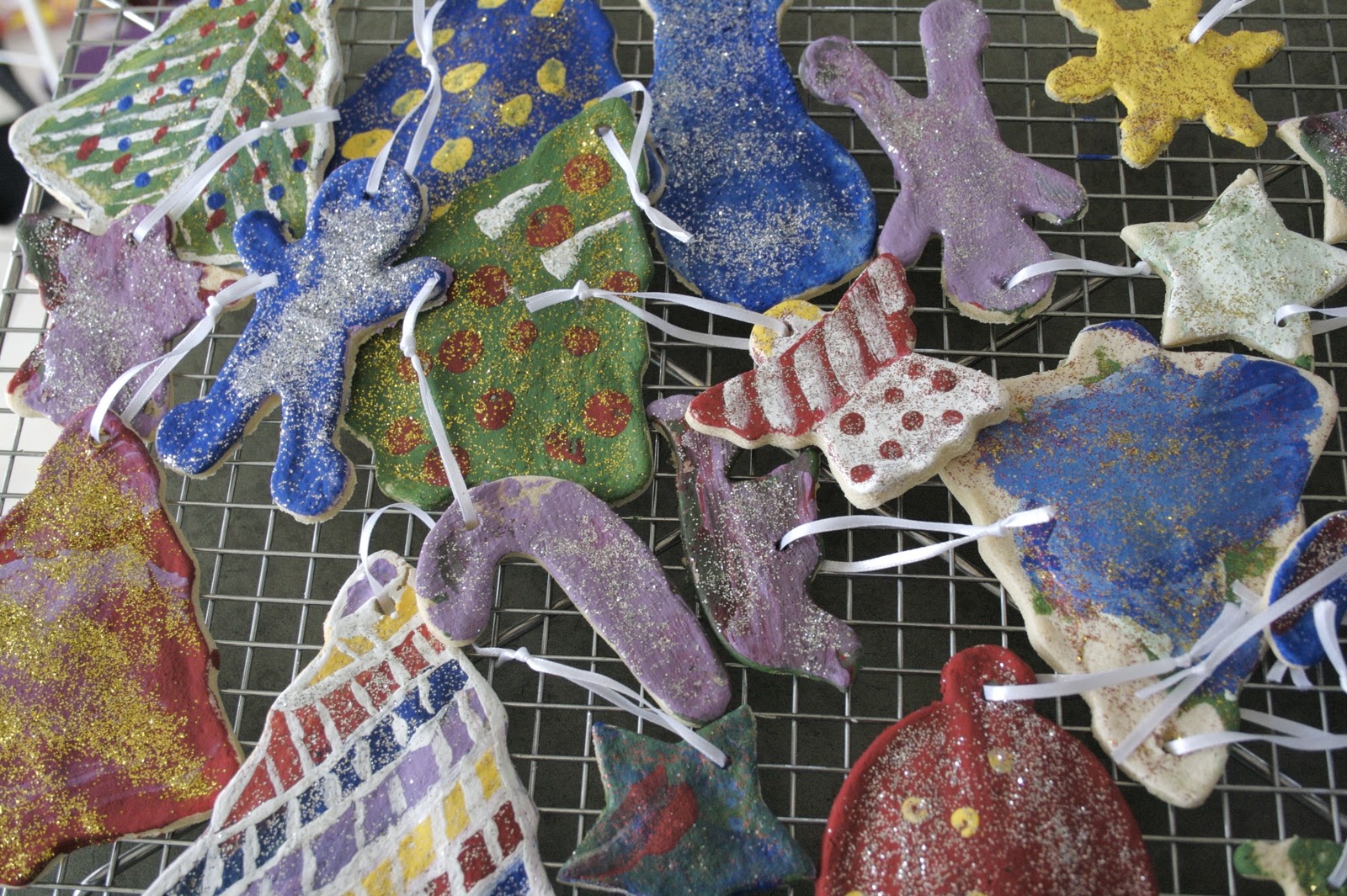 we had fun doing this. the kids all picked out their cutters and using these instructions from kaboose.com we created the dough and followed the instructions. i doubled the recipe to get enough for the kids and used lots of kinds of cutters - not just star and tree. then we broke out all our colours and voila! instant decorations and memories for a long time.