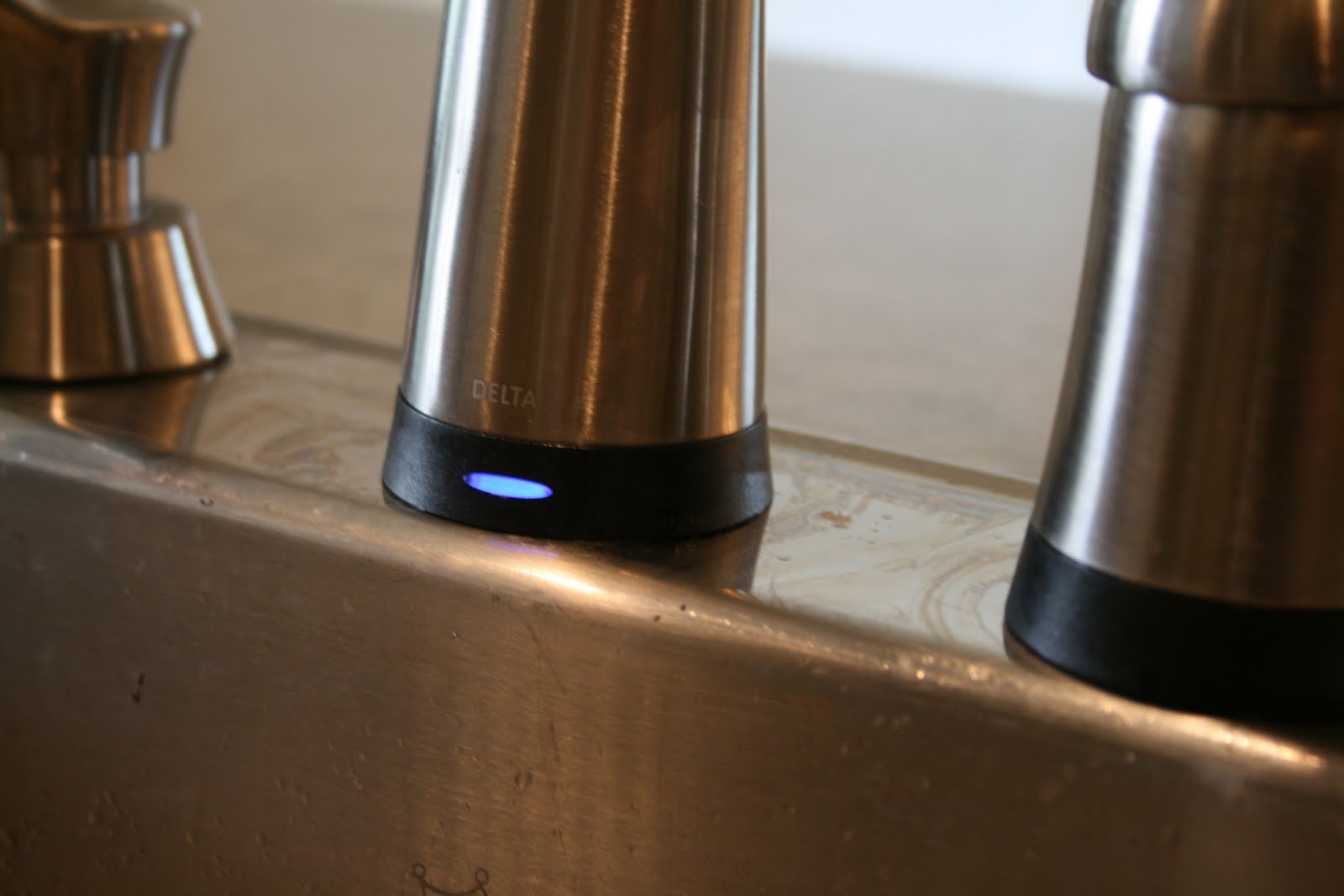 the beauty about this is that it's all controlled by sensors. i was under the impression that you tap the top and it starts for you so you don't have to use your hands at all. they weren't lying. and not only is it the top you touch; i came to realize it's all over the neck and on the handle too! the thing is amazing! we ended up getting the three hole model as that is what our current sink handles so we got the separate single handle plus the soap dispenser and the sprayer attached to the neck. all i have to say is love love love. i have done more dishes in the past three days then ever - and if you know me you know that i have a hate affair with dishes. no more my friends.