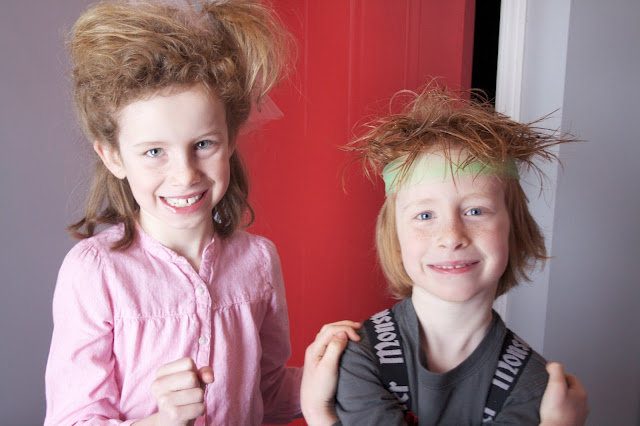 today is wacky hair day at school. i am covered in gel, hairspray and spray glitter. you want to know something? i really didn't have to do anything to aydan's hair - it's the craziest when she wakes up that she would have fit right in...i did though cause that wasn't good enough for her - she wanted the transformation!