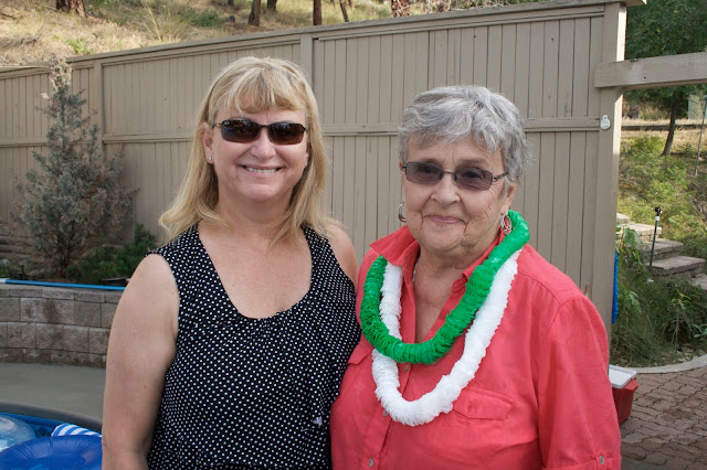 after our time was up with them we headed back to the house and there there was a summer party starting up! friends of my sister & brother-in-law came to meet and greet with us - with a surprise appearance from cousin darlene! there was a sit-down dinner, a masked avenger sighting, a pinata and, in true summer form, a water gun fight - kids vs. adults. someone had put water filled pistols IN the pinata......